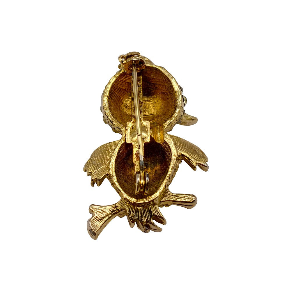 1970's Gilt Metal Clear Crystal Chick Brooch