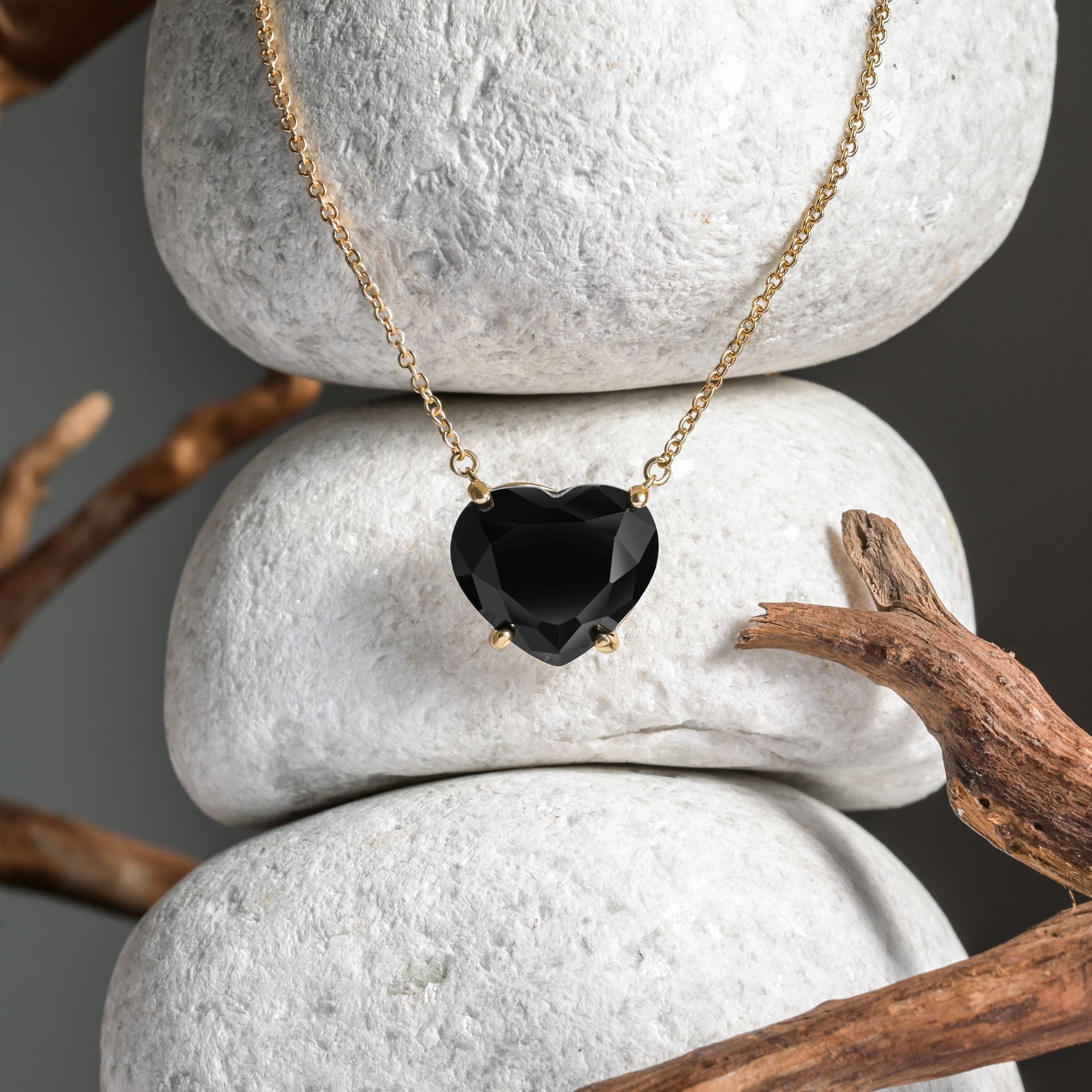 Gold Plated Black Stone Heart Pendant